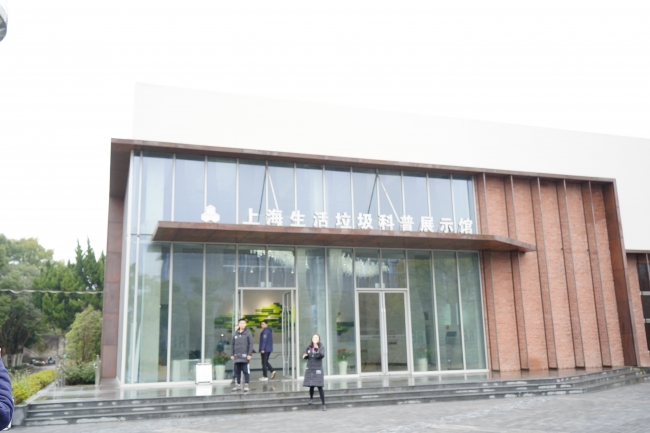 上午10:00师生共同从闵行校区出发乘车前往上海老港废弃物处置有限公司。上海老港废弃物处置有限公司位于上海市浦东新区南滨公路2088弄288号,本次参观全程由两位讲解员老师带队,分为两组进行参观。同学们首先参观上海生活垃圾科普展示馆。在独特的大厅中,同学们看到了废旧玻璃瓶制作而成的大型吊灯、废旧金属制成的墙饰,整个展示馆也是由厂房改建的,变废为宝也可以非常美观实用。