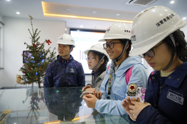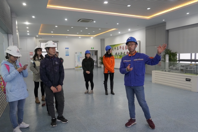 最后便是垃圾焚烧厂的参观,同学们纷纷戴上安全帽,进入焚烧厂的工作区。焚烧厂的两位带队老师为同学们解释垃圾抓斗是如何工作的,并且展示了垃圾焚烧炉的焚烧状态。对着焚烧厂的模型,老师解释了垃圾入库、焚烧、发电、净化吸附、最后排放的全流程,同学们反应热烈,积极提问,老师们也针对问题一一进行解答。