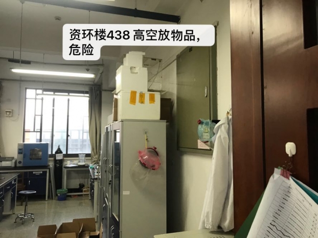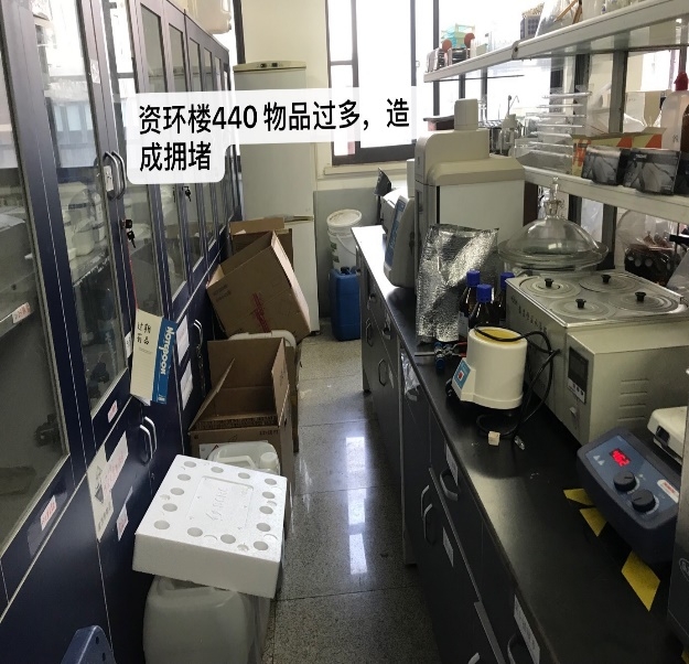的安全小卫士联合来自化学与分子工程学院的小卫士进行的第二次专项检查。实验室排查过程中还发现了一些其他问题,其中资环楼418实验室(张明老师),异味很大,此问题在多次检查中重复出现,建议改进通风设施。资环楼446实验室(由文辉老师),无人房间,房间不用应关好门,防止他人误入。还对上次的检查表现较差的实验室和办公室进行了重点检查,资环楼436实验室(赵雅萍老师),上次检查时钢瓶未固定,本次有所改善,钢瓶已经固定。针对上个月表现较差的资环楼444办公室(阎恩荣老师),进行了重点回访,整体环境较上次有了很大改善,杂物堆放问题明显减少,在此表扬。