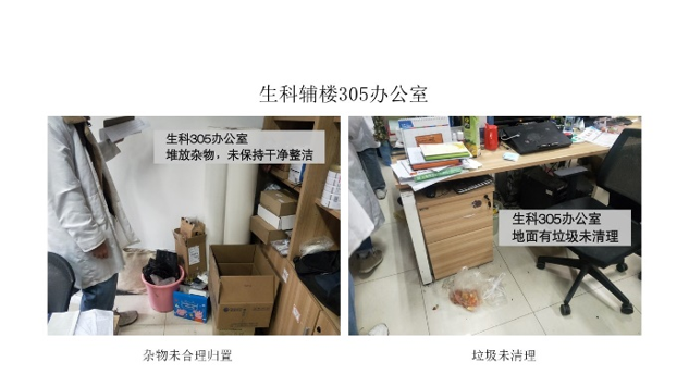 在本次检查的所有实验室中,资环楼126情况最佳,资环楼448室情况最差。本次实验室检查的主要问题为杂物堆放。