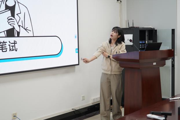 第二位分享嘉宾李梦茁,目前就职于上海市闵行区水务局。她聚焦上海市考,围绕岗位选择、笔试与面试备考展开了细致讲解。在笔试方面,她强调“真题为王”,建议通过网课夯实基础,模块化训练不同题型,重点吃透真题与错题;针对面试,她特别指出了上海市考独有的“人岗匹配”特点,鼓励同学们尽早准备、稳定心态,并充分利用好校园资源。此外,她结合自身工作内容与职业发展路径等,为同学们描绘了清晰的体制内生涯图景。