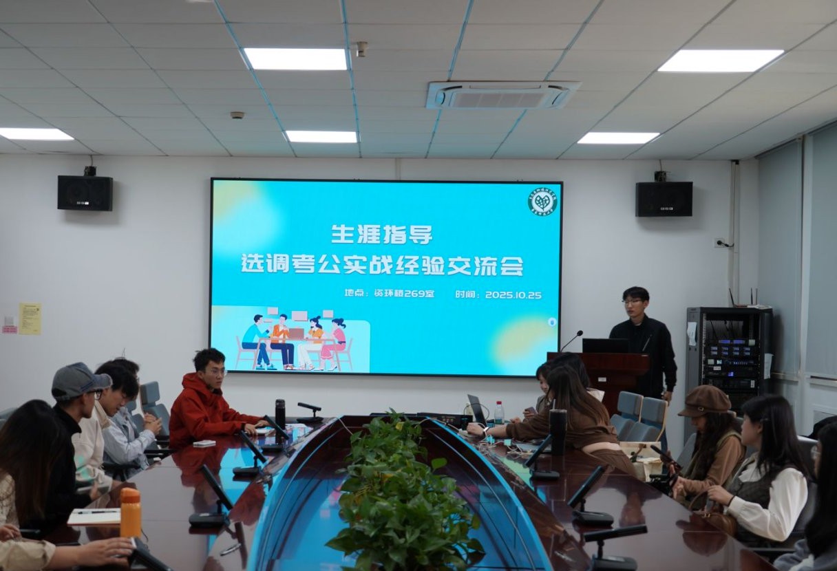 于资环楼269室举办选调考公实战经验交流会,本次活动邀请了2023届生态学硕士毕业生包洁欢、2023届环境工程硕士毕业生李梦茁两位优秀校友,为同学们带来一场干货满满的经验分享。学院专职辅导员吴丹和40余名同学参加本次活动,研会生涯部陈博宇担任主持。