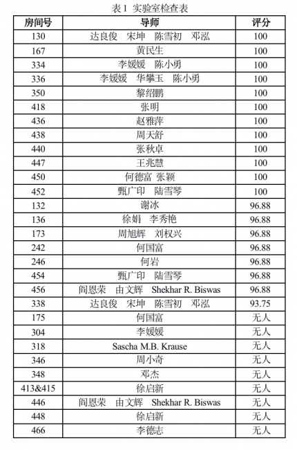 此次检查所有实验室评分均在90以上,其中有12个实验室获得满分,与去年同期检查结果相比有很大进步。大部分实验室卫生情况良好、干净整洁,试剂摆放非常整齐,但仍有部分实验室存在实验物品和垃圾堆放杂乱、插排使用不规范等安全隐患,希望各个实验室能予以重视,加强实验室安全意识,同时也希望本次检查获得满分的实验室继续保持。