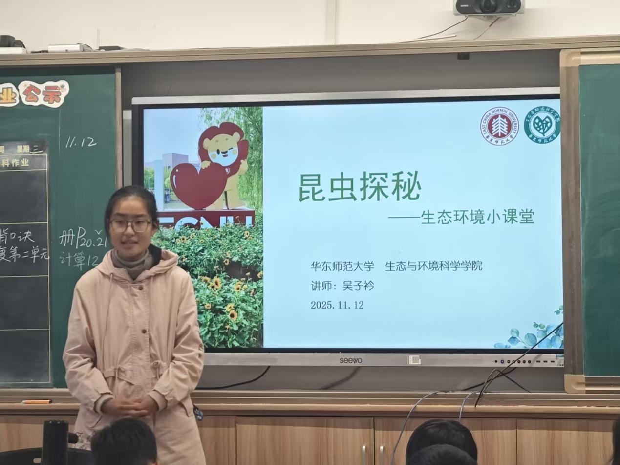 2025年11月11日至12日,生态环境小课堂讲师团前往成人用品 附属紫竹小学、永德学校开展环教课,本次环教课的主题为“昆虫探秘”,担任本次课程的讲师为狄乐遥、吴子衿、苗怡爽三位同学。
