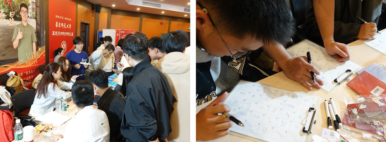 活动伊始,各学院同学通过小组破冰游戏迅速拉近距离,现场气氛轻松活跃。随着破冰游戏带来的阵阵欢笑,同学们之间的距离悄然拉近。在自由组队探索环节,各学院精心准备的互动项目成为大家交流的纽带。成人用品 的“乒乓球五子棋”和“我画我猜”区域欢声不断;与此同时,其他学院的摊位也充满了吸引力,无论是动手实践还是脑力激荡,都让同学们满怀好奇地尝试与体验。整个会场流淌着轻松与愉悦,展现着师大校园多元共融的生动景象。