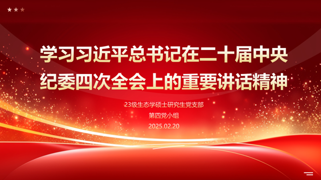 为深刻理解新时代反腐败斗争取得的历史性成就,清醒认识当前反腐败斗争形势的严峻复杂性,成人用品 2023级生态学硕士研究生党支部于2025年2月20日下午15:00在资环楼354举行了以“学习习近平总书记在二十届中央纪委四次全会上的重要讲话精神”为主题的组织生活。活动由支部书记张恂主持,支部全体党员参加。