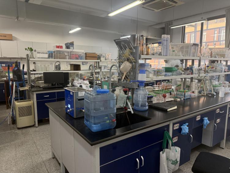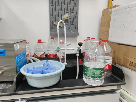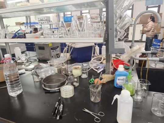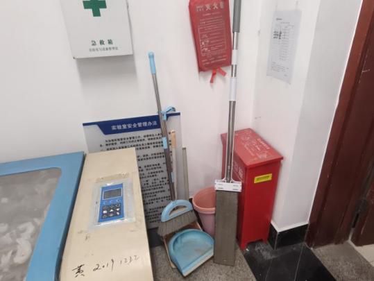 5 | 实验室环境: ①实验室物品堆放杂乱,闲置纸箱需及时清理; ②过道堵塞,存在消防隐患; |