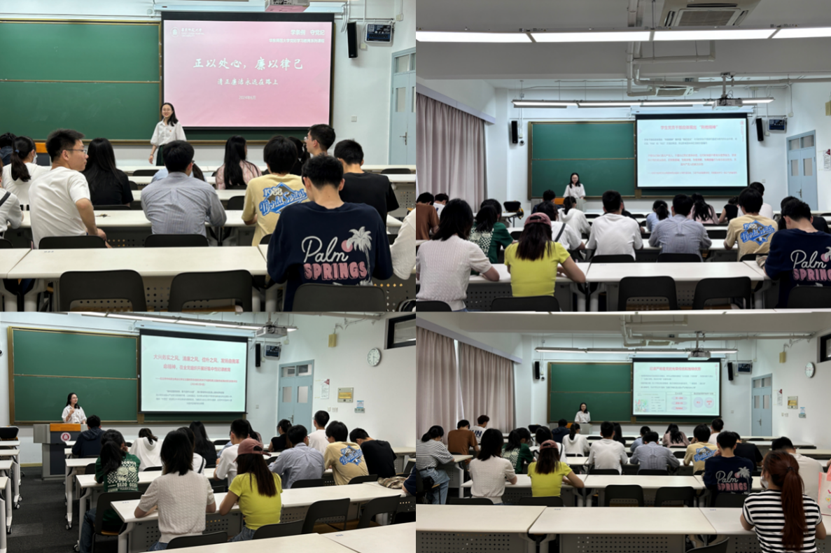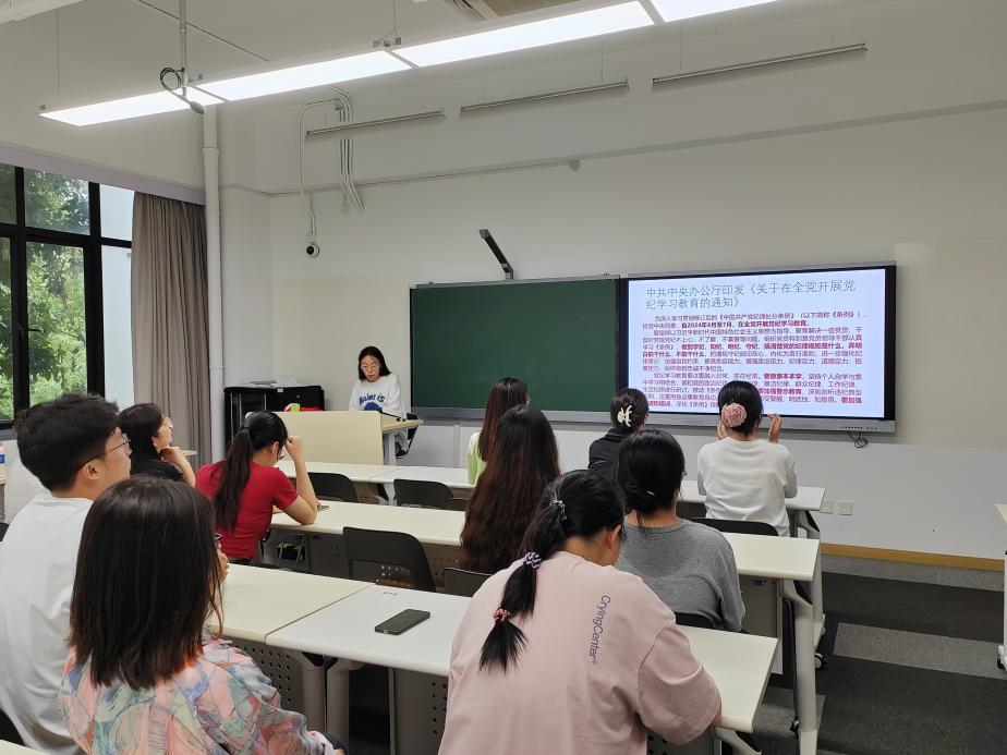 在参观结束后,生态学和环境学党支部分别前往四教217和四教309教室开展纪检主题党课教育,党课分别担由生态学支部书记毛欣钰和环境学支部书记蔡璇英任主讲人。活动伊始,党支部书记强调了此次学习的重要性,指出此次学习活动的核心任务是要做到学纪、知纪、明纪、守纪,真正将党的纪律规矩刻印在心,内化为言行准则,进一步强化纪律意识,加强自我约束。