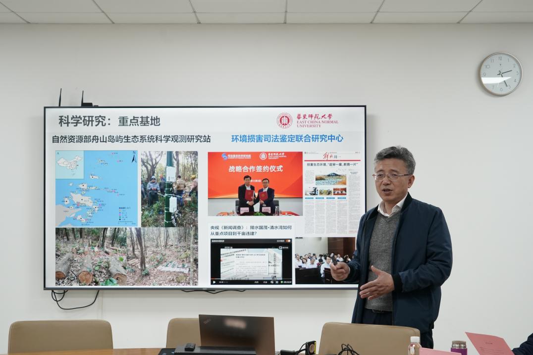 潘靓在简要介绍了政治与国际关系学院的基本情况,学院秉持 “学术导向第一 应用导向要加紧”的发展思路后,深入阐述了此次调研的核心目的。他期望通过双方的紧密交流,能够强化两所学院的合作关系。潘靓强调,在生态文明建设进程中,中国走出了一条与西方截然不同的道路,积累了大量宝贵的实践经验,这些经验为全球生态文明建设提供了独特的中国视角和丰富资源。他积极倡导借助学术交流、全球传播等多元渠道,将中国生态文明建设的成功故事推向国际舞台,提升中国在全球生态文明领域的话语权和影响力。