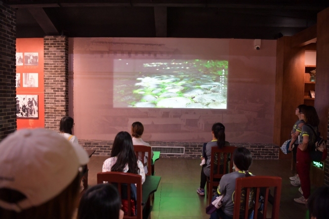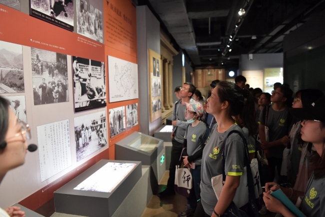 师生在讲解员带领下参观