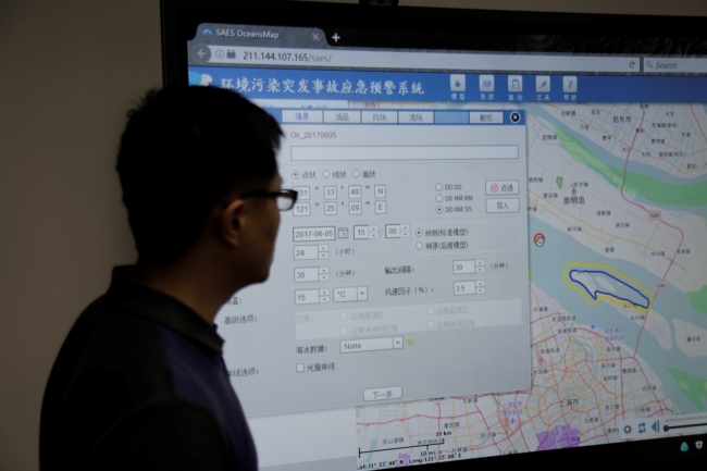 结束了两个实验室的参观后,最后一个参观的是环境规划与标准研究所的水污染模拟工程技术中心。研究所拥有一批国际先进地表水环境数学模拟和污水处理数学模拟系统,可以开展一维、二维和三维水动力与水质、生态(富营养化)数值模拟实验研究,该系统基于大量的数据,通过突发事故的模拟为环境风险评估、突发事故应急决策的制定和事故后的生态损失评估提供科学依据。