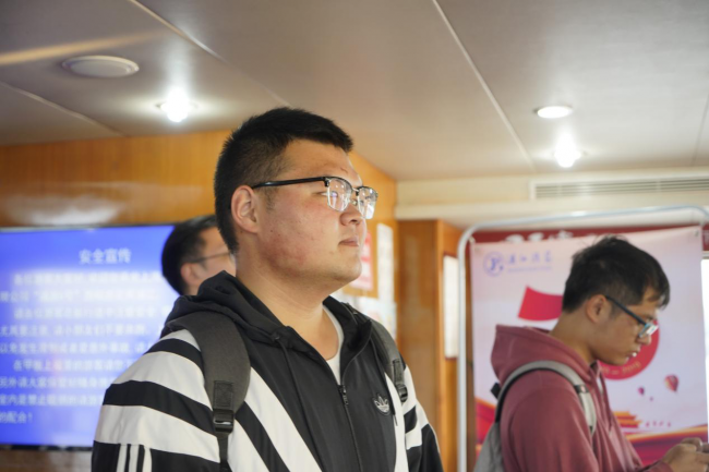 王征瑜科长在现场为同学讲解船上的废水收集和处理过程