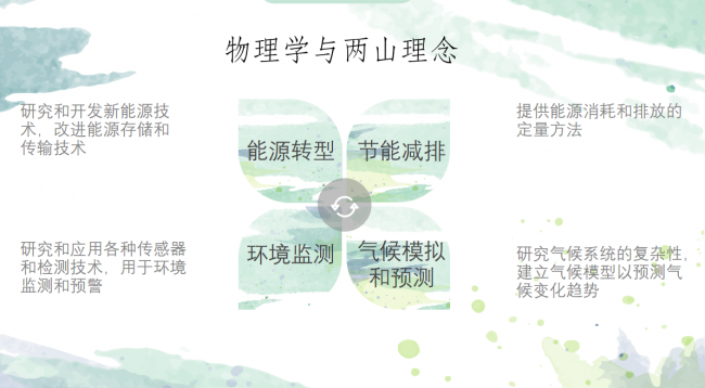 从物理学专业的角度来看,以本次考察的安吉余村、双一村、金山廊下友好村为代表的乡村的"两山转化"可以涉及到能源和环保方面。