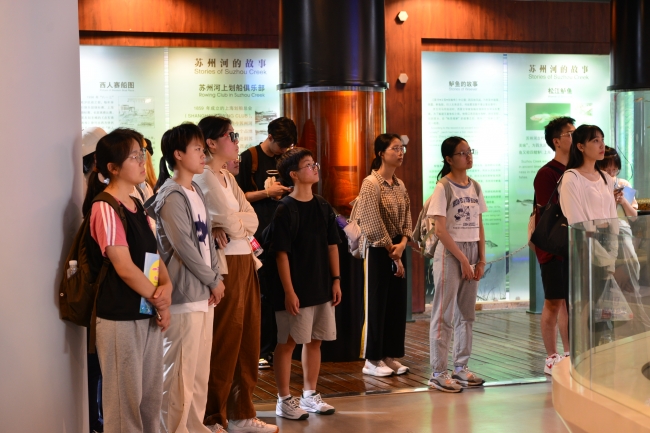 3日上午,师生们乘车前往苏州河畔的四行仓库,张勇老师和徐倩华同学先讲解了苏州河沿岸工业遗产的故事;顶着烈日,师生们沿苏州河一路步行到达“梦清园”环保主题公园,在梦清馆中同学们参观了“印象苏州河”、“污染沉重的代价”及“未来苏州河”三大展区,了解了苏州河的“前世今生”及未来发展,并深刻体会到“污染容易治理难”的道理。