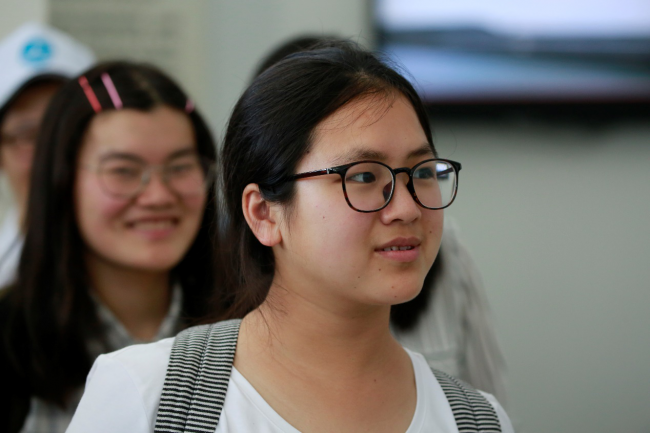 同学们观看东亚——澳大利亚迁徙水禽飞行路径