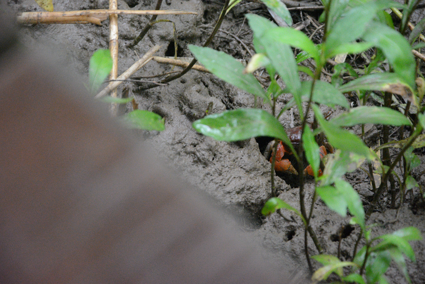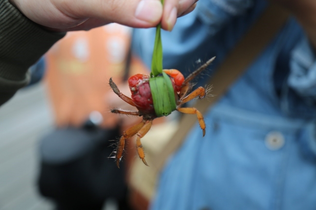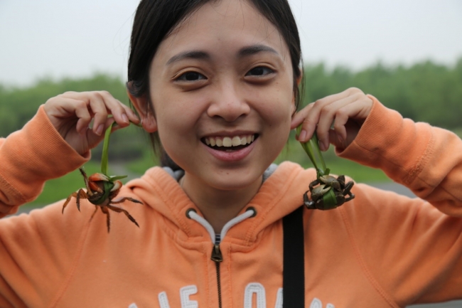 11日早晨8点左右,大家在农家乐吃完早餐后一同前往西沙湿地公园。进入西沙湿地公园前,刘文亮老师和李媛媛老师为大家介绍西沙湿地及湿地中动植物。西沙湿地公园内芦苇如席,一望无际,蔚为壮观。大家在芦苇荡中穿行,时而侧耳聆听鸟鸣,时而抬头观鸟,时而低头寻蟹,野趣盎然。一路上,李媛媛老师和驻站研究生梁晓莉、潘晨等为大家介绍湿地中栖息生长的各类动植物和相关生境知识。