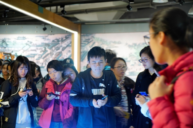 在讲解人员的带领下,同学们开始了苏州河工业文明展示室内馆的参观。室内展示面积约800平方米,以丰富的文物展品、多样的展示手段,以历史为时间轴、以苏州河为空间轴,再现了上海开埠至今苏州河沿线工业文明的风雨历程和辉煌成就。