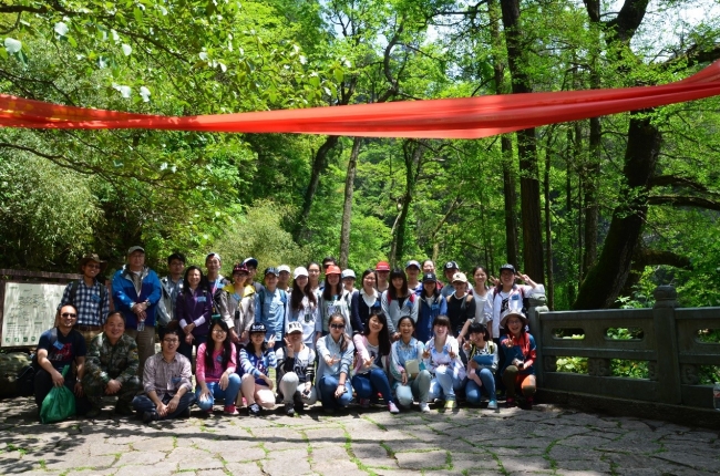野外自然观察实习师生在天目山五世同堂前合影
