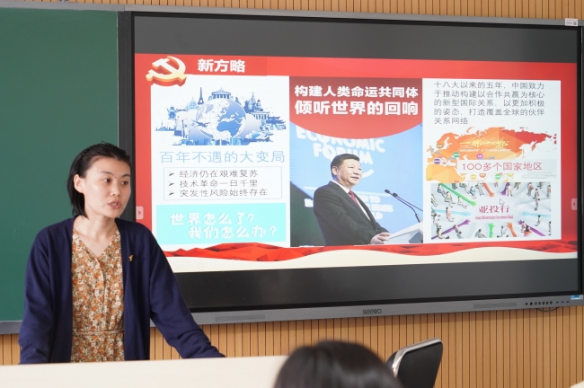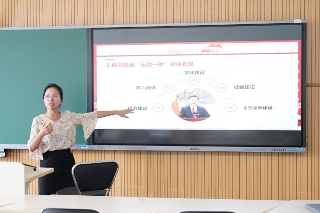 管理与支撑教工党支部开展中共十八大和中共十九大历史回顾微党课,本期讲读人为刘敏老师和董舒老师,支部全体党员和十余名学生党员参加,共同回顾学习了习近平领导的新时期中国发展变化和总体布局,共同领略了一个大美中国的自信自强的新时代。该系列活动结合“百年跨越对话红色经典”校园主题活动日暨经典阅读季开展,微党课讲读结合《从一大到十九大:中国共产党全国代表大会史1921-2017》等书籍开展。