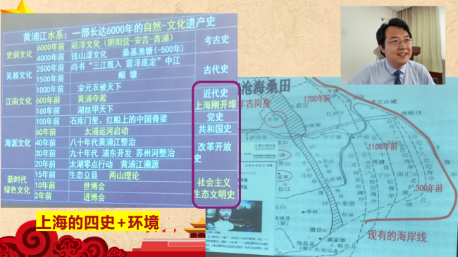 二、根据上级党委的要求,环境专业教工党支部书记张勇以“深入学习“四史”,坚守初心使命——上海变迁故事”进行了一场党课,首先从专业角度谈了认识上的转变,理解要把学习贯彻党的创新理论作为思想武装的重中之重,并同学习党史、新中国史、改革开放史、社会主义发展史(“四史”)结合起来。结合环境专业发展的现状,特别是上海市生态环境问题在改革开放40年来的发展变化,从苏州河污染治理、人均绿化面积改善、自来水水质提高、浦东开发放的环境影响评价、黄浦江与上海的变迁等,讲了绿水青山就是金山银山的背景下,环境专业如何更好的为上海城市发展做出新的贡献。