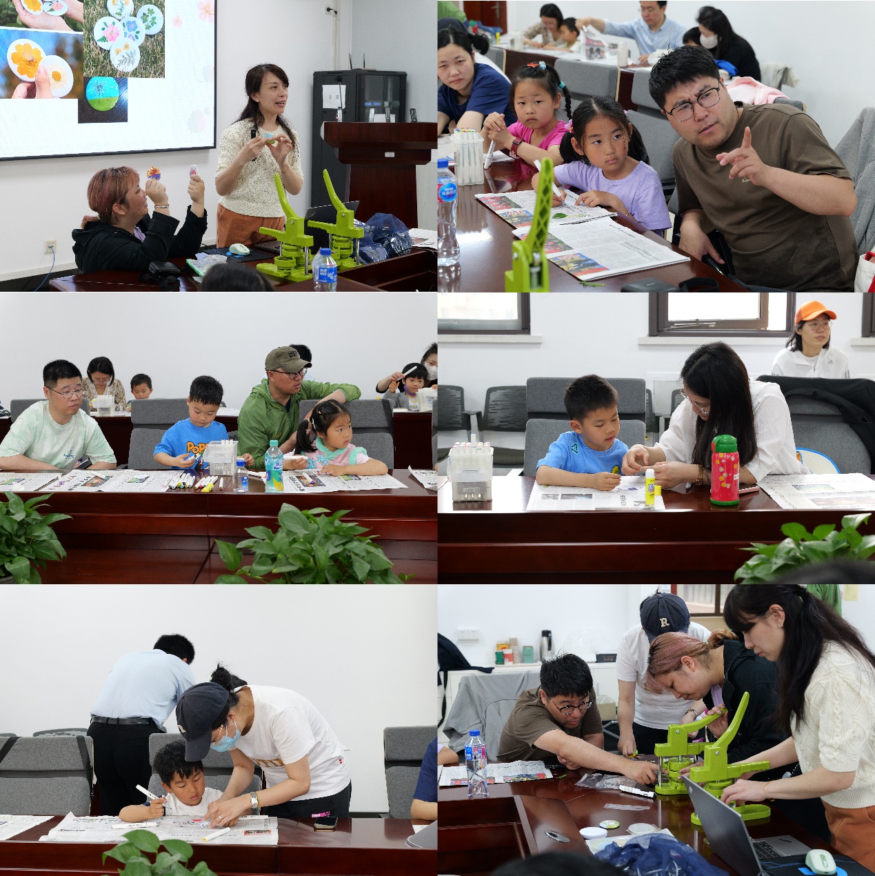 吴丹老师展示徽章制作方式 小朋友与大朋友们制作精美徽章
