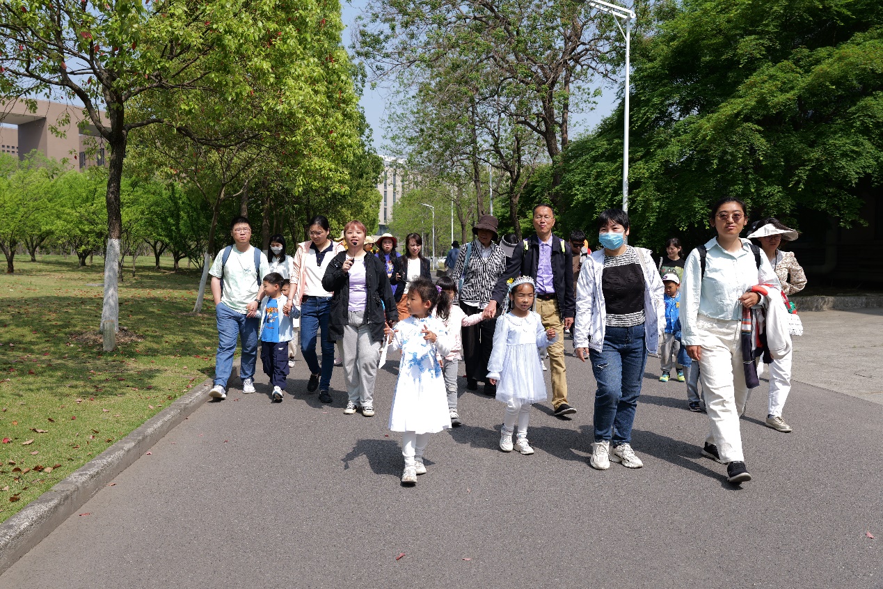 从资环楼到生态岛的沿途,21级生态学专业博士研究生罗心怡为小朋友开启了校园植物认知之旅。“杜鹃”“鸡爪槭”“香樟”“鹅掌楸”“红花檵木”“枇杷”,随着一个个植物的揭秘,小朋友们初识了这些植物,同时也在小罗老师的讲解中了解了植物的专属特性。