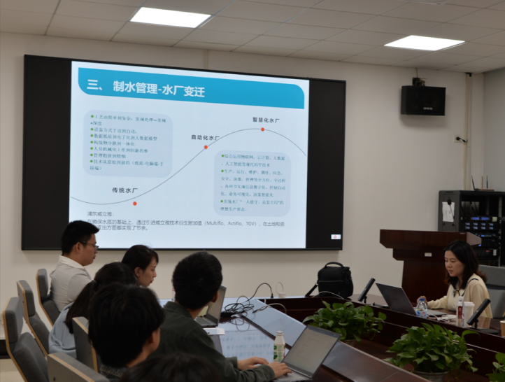 浦东水厂副厂长李子梦从生产线,组织架构、水厂概况等全方位介绍了浦威公司的工作业务,重点阐述了公司在智慧水务、水质管控等方面的创新举措,展现了公司在行业内的领先地位。