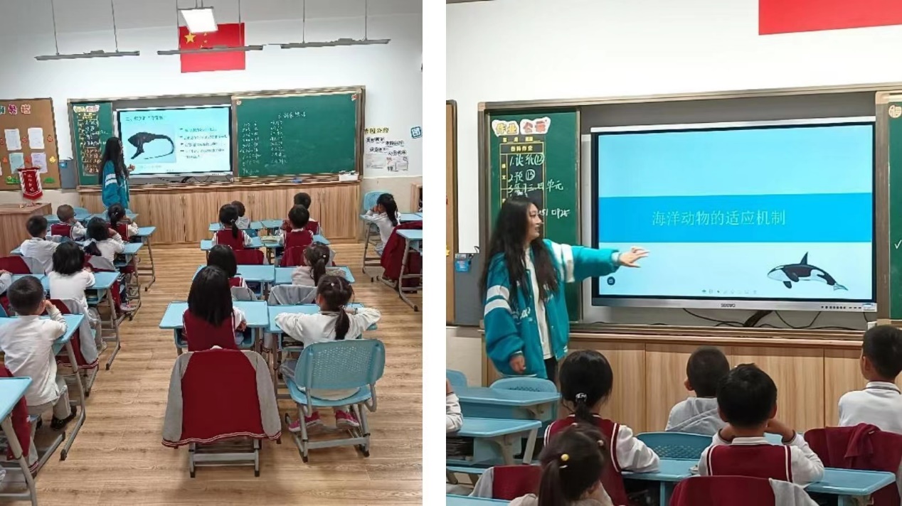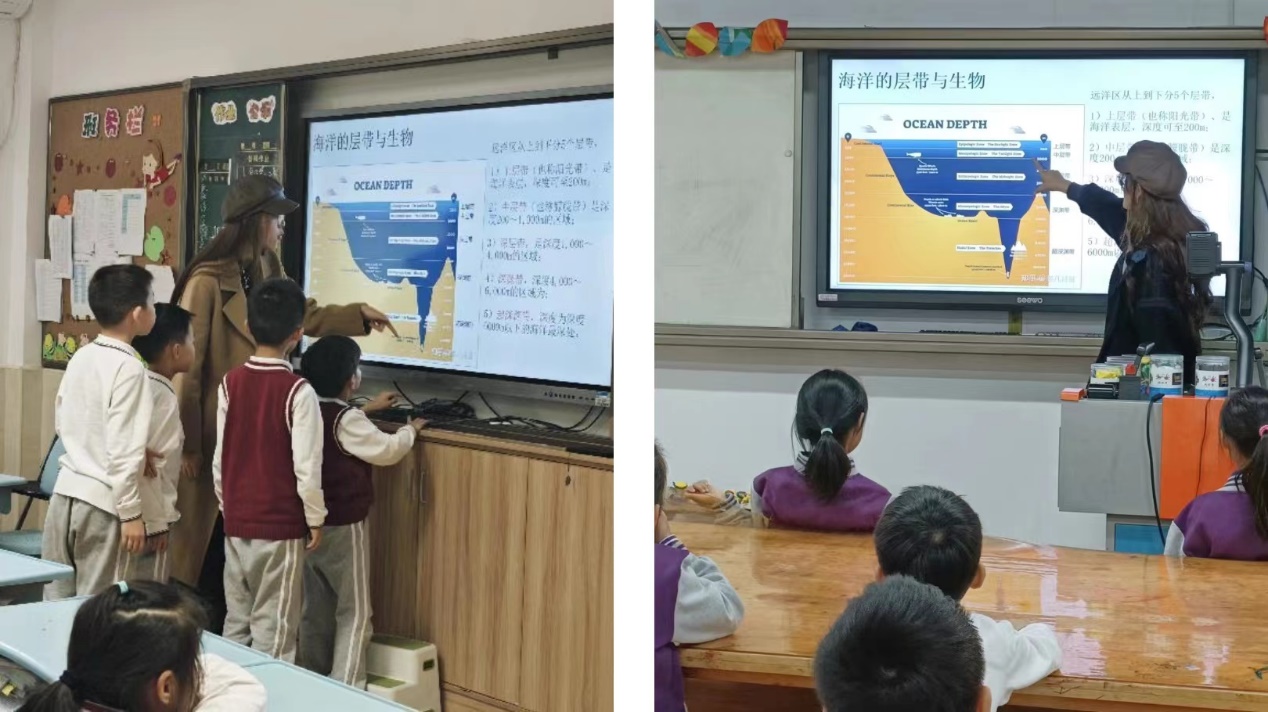 2023年11月7日、8日下午,生态与环境小课堂讲师团前往成人用品 附属紫竹小学、永德实验小学开展环教课,主题为“海洋生态问题”,担任本次课程的讲师为顾思雨和唐逸倩同学。
