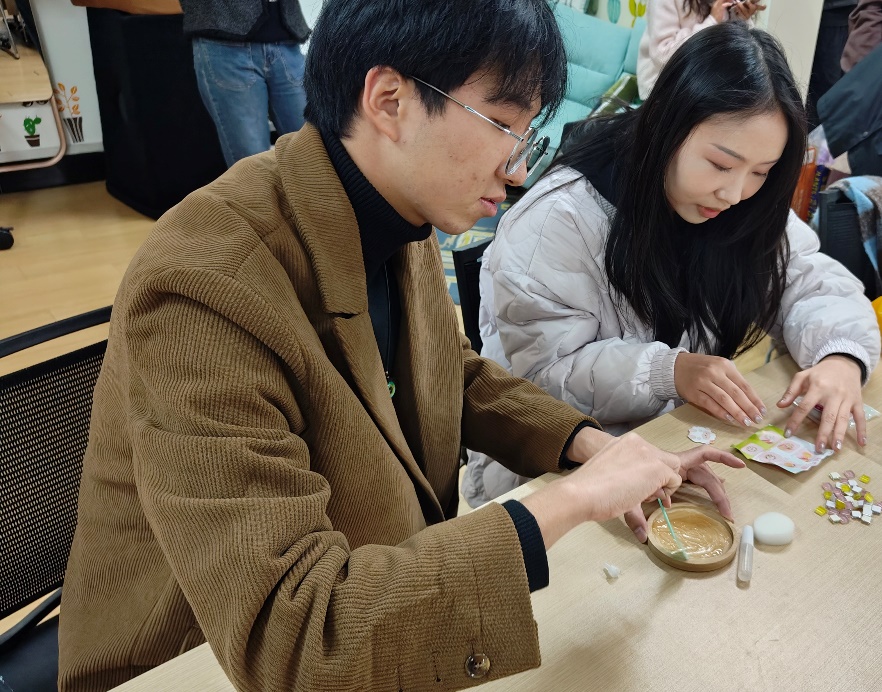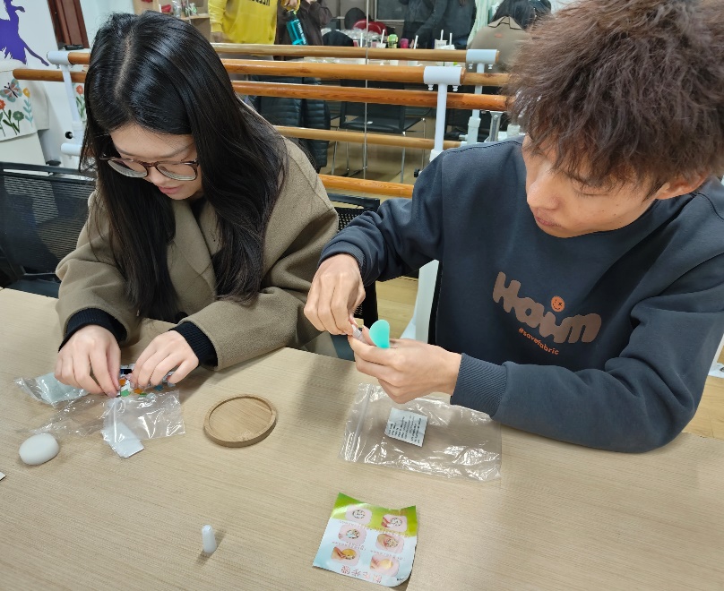 参与同学正在制作马赛克杯垫