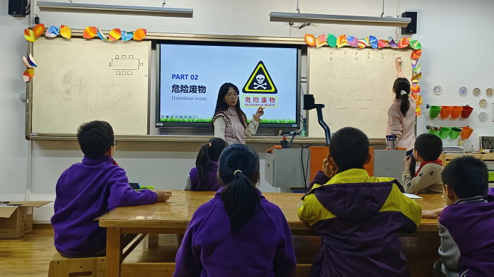 附属紫竹小学和永德实验小学,开展关于城市生活垃圾与危险废物的环教课,担任本次课程的讲师为李凯茵和向昭宜。