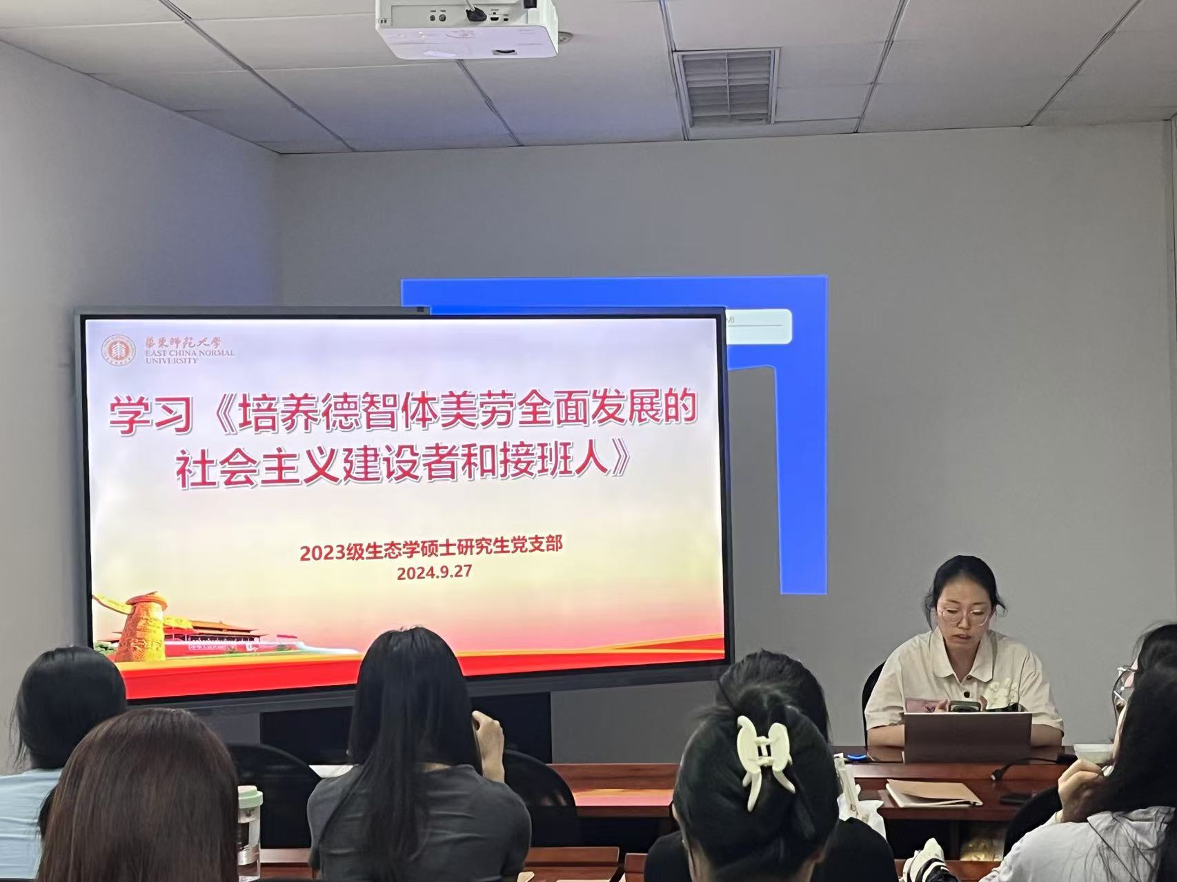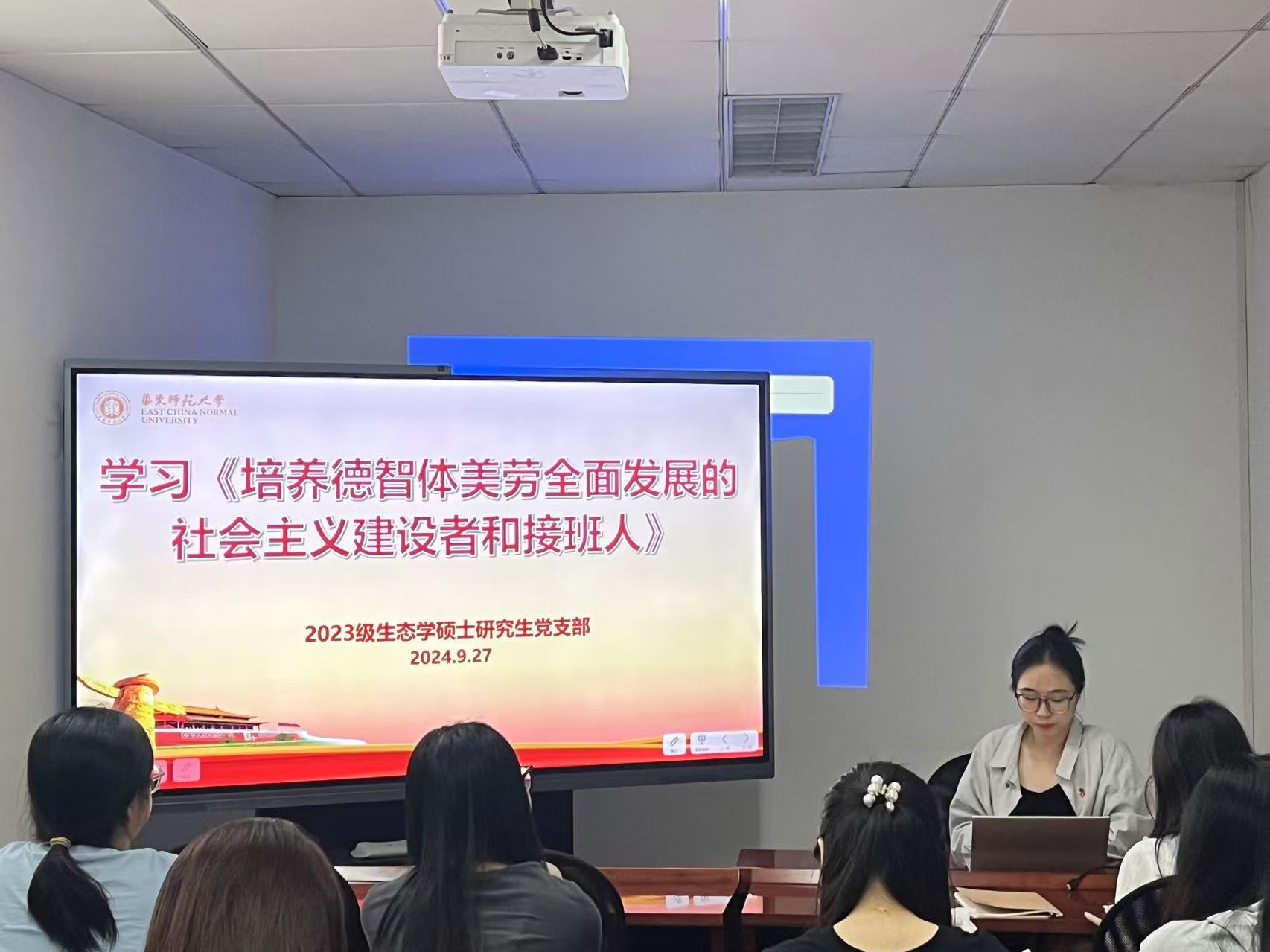 2024年9月27日,成人用品 2023级生态学硕士研究生党支部召开学习《培养德智体美劳全面发展的社会主义建设者和接班人》专题组织生活,活动由第三党小组主持。