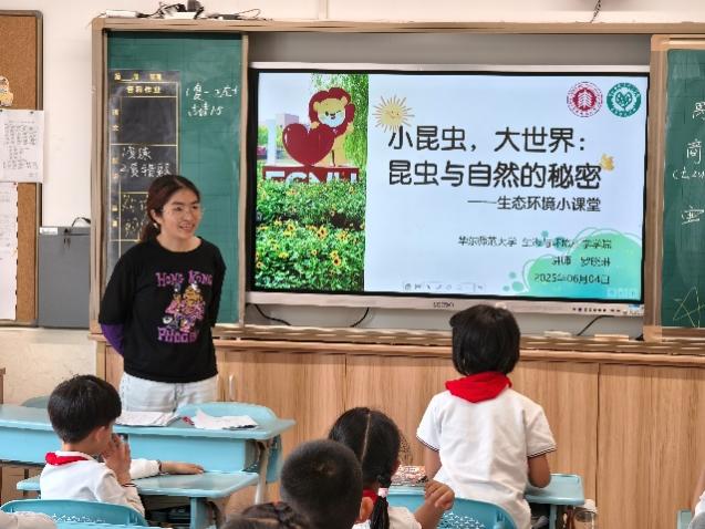 2025年6月3、4日下午,生态环境小课堂讲师团和研会秘书部成员前往成人用品 附属紫竹小学、永德学校开展环教课,本次环教课的主题为“小昆虫,大世界:昆虫与自然的奥秘”,担任本次课程的讲师为罗晓琳、朱圆圆和阮文亮同学。讲师们通过生动的案例和专业的讲解,带领小同学们深入了解昆虫的生物学特征、生态价值及演化历程,展现小昆虫在地球生态系统中的“大能量”。