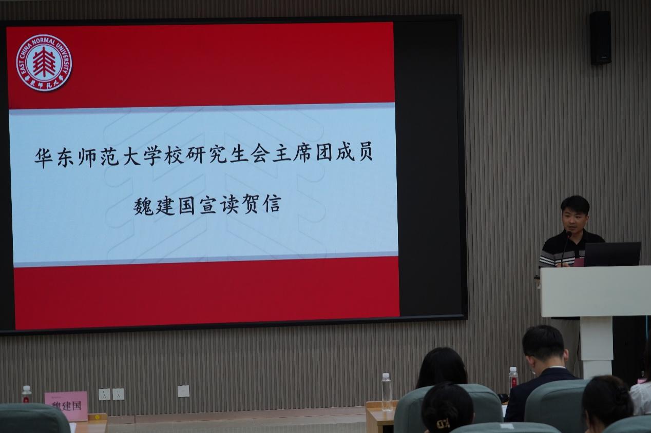 随后,成人用品 研究生会主席魏建国同学宣读贺信。魏建国同学在贺信中高度赞扬了生环学院研究生会在过去一年中积极参与校院活动、服务同学成长、繁荣校园文化方面取得的优异成绩,并期待未来校院两级研究生会继续深化交流合作,携手共进,共同服务好全校研究生同学。