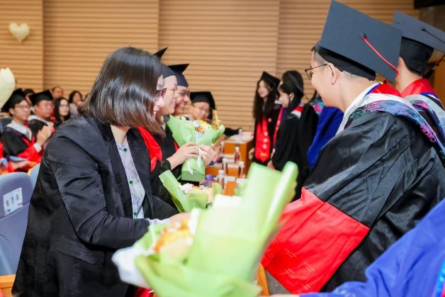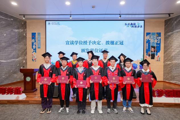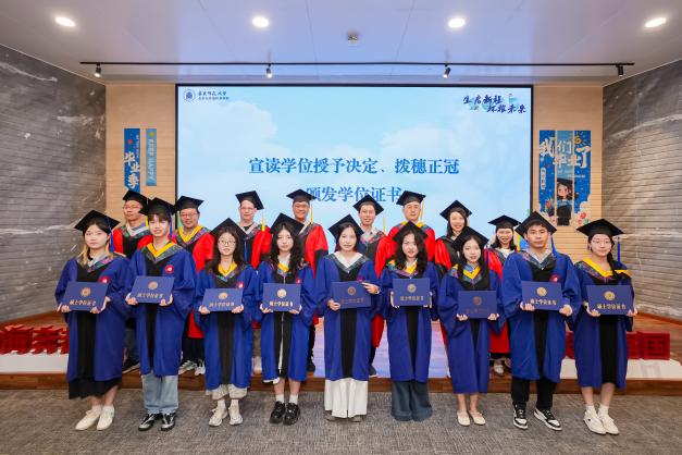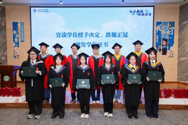 在庄严而温馨的拨穗正冠环节,教师代表们为每一位毕业生亲手拨穗、颁发学位证书。随着流苏从右至左轻轻一拨,标志着毕业生们正式从学生身份迈向更广阔的人生舞台,带着学院的期望、师长的嘱托和同窗的情谊,怀揣理想,整装再出发。