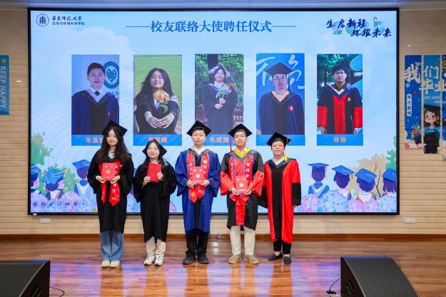 校友是推动学校高质量发展的重要力量,今年学院共有5名毕业生受聘为校友联络大使。学院党委书记嵇渭萍宣读2025届生环学院校友联络大使名单并颁发聘书。在致辞中,嵇渭萍强调,校友联络大使是连接母校与广大校友之间的重要桥梁,是传承学院精神、凝聚校友力量的关键纽带。对校友联络大使,她提出三点希望:一是肩负使命担当,传承绿色精神——做生态文明的传播者与践行者;二是架起沟通桥梁,凝聚校友力量——做校友联络工作的先行者与引领者;三是心系母院发展,汇聚奋进力量——做学院高质量发展的参与者与推动者。