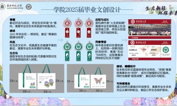 典礼现场正式发布了学院2025届毕业文创,均为同学们策划设计,并由学院2007届生态学专业硕士、2024届博士院友孟陈先生捐赠制作。求学期间,孟陈院友自主创业成立了景遥(上海)信息技术有限公司,是一家专注于航空航天、无人机遥感及应用研发的上海市高新技术企业。此次捐赠也是为表达对学院多年培养的感谢。