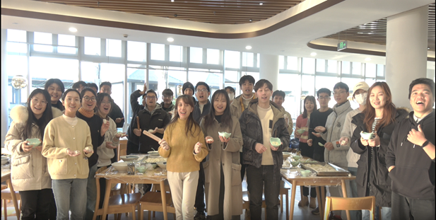 第三项活动是饺子历史介绍。2023级研究生张子扬对饺子的历史渊源、民俗和象征意义进行了介绍。在飘香的饺子香气中,同学们对饺子的历史有了更深的了解。