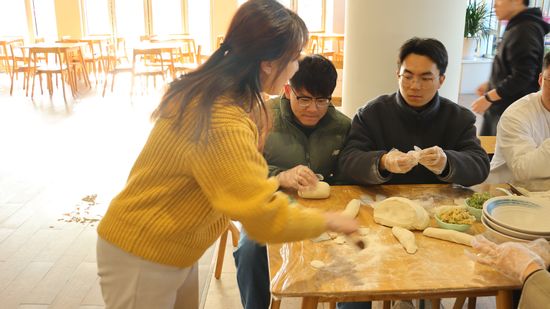 第一项活动为包饺子技巧学习,辅导员吴丹给同学们演示了擀皮、包饺子的技巧经验,给同学们提供了良好的示范。