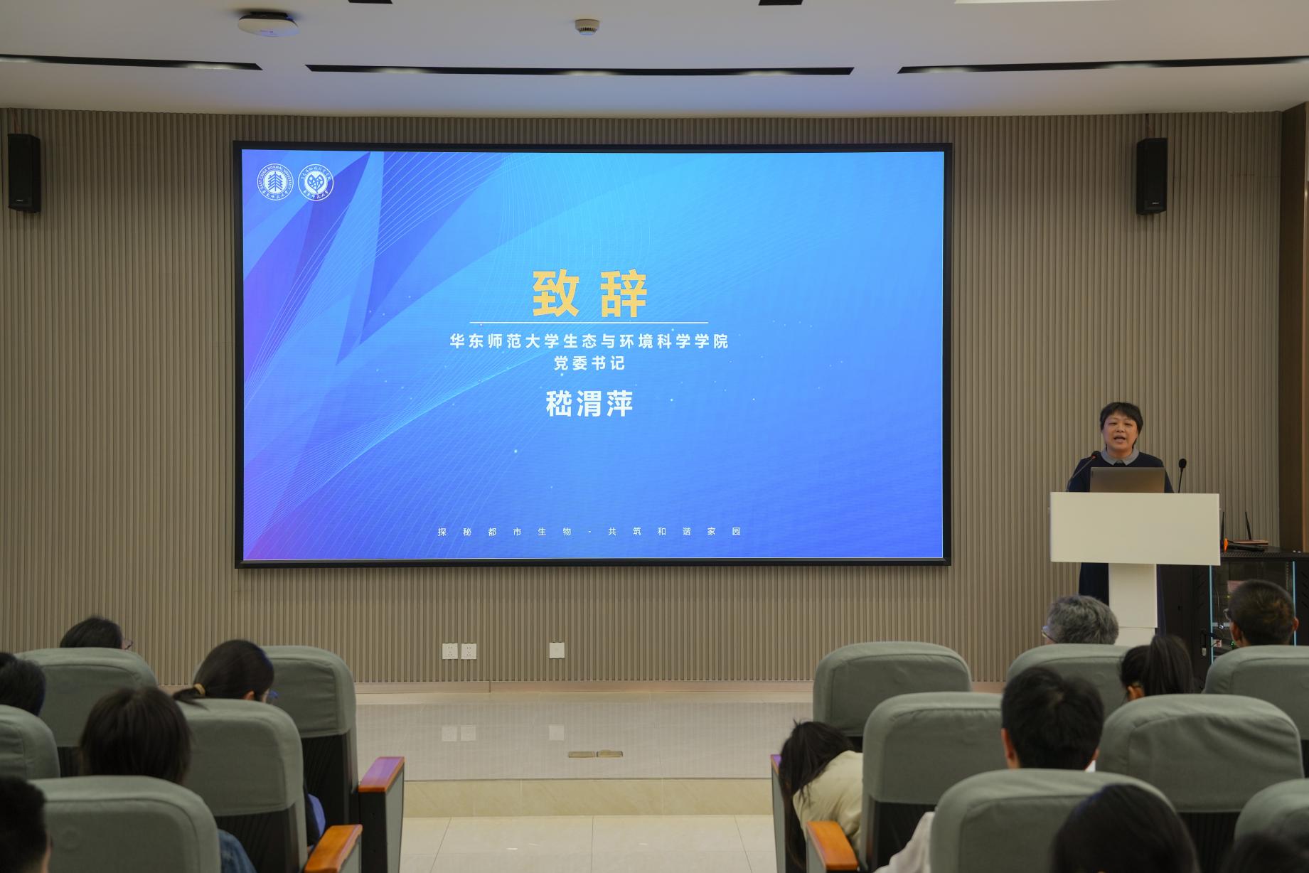 现场活动第二阶段由学院陈小勇教授和城市荒野工作室创始人郭陶然带来了两场精彩的科普报告。陈小勇教授以《城市在生物多样性保护中的作用》为主题,从专业视角深入解读了城市生态系统在生物多样性保护中的重要地位和独特作用,提出了一系列切实可行的城市生物多样性保护策略与方法,引发了同学们对城市生态问题的深入思考。郭陶然老师《在城市中重建荒野》的报告中,通过展示上海城市生物多样性恢复实践的多个实践案例,特别是本土植物群落重建,生动地向同学们展示了如何在城市环境中实现荒野的重建与生态系统的恢复,让同学们对城市生态修复有了更直观的认识。