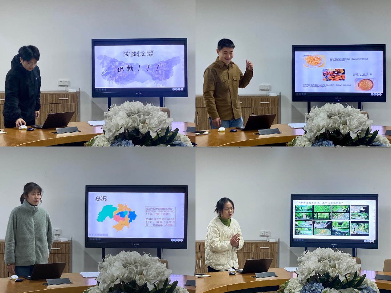 第四组是来自于安徽的吉龙升、周耀、许戴银滢和许欢。四位同学从“文化传承”和“历史名胜”出发,向大家详细介绍了安徽合肥、芜湖和滁州的经典景点和其中蕴藏着的历史文化。