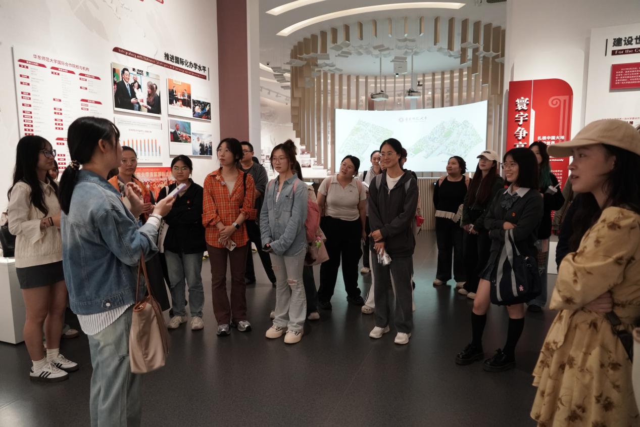 参观结束后,同学们跟随辅导员吴丹老师的脚步漫步于中山北路校区,从群贤堂、红楼、丽娃河再到三馆,大家纷纷被古典宏伟的建筑吸引驻足,感受着建筑背后师大波澜壮阔的历史沉淀,沿着众多学子的追梦步伐,探寻师大人敢于有梦、勇于追梦、勤于圆梦的奋斗故事。
