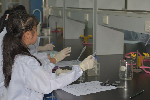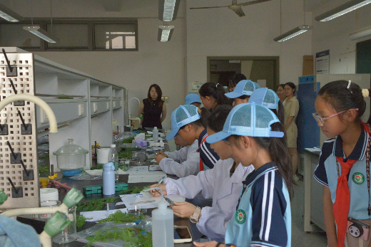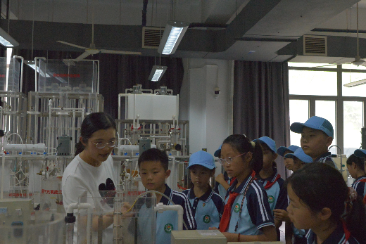下午13:00,师生们首先来到生态与环境实验教学中心。走进现代化的实验室,同学们被各种先进的实验设备、丰富的科研标本和严谨的科学氛围所吸引。在学院实验中心副主任崔玉雪老师的带领和讲解下,小朋友们了解了大学生的实验课程设置、科研训练及科学研究方法,感受到了高校学习生活的严谨与充实。