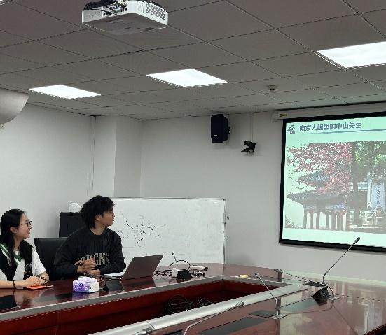 活动第三部分,杨辰雨向大家分享了中山陵。孙中山先生逝世前夕曾说过“吾死之后,可葬于南京紫金山麓,因南京为临时政府成立之地,所以不可忘辛亥革命也。”如今孙中山先生长眠于中山陵,见证着南京的日新月异。在中山陵的至高点是中山先生祭堂,中间是一尊孙中山先生的大理石坐像,孙中山先生身着长袍马褂,端手持长卷,他深邃的目光凝视远方,将整座金陵城尽收眼底。而新街口广场中央的孙中山雕像“屹立于繁华,见证百年沉浮”,在阳光下熠熠生辉。中山先生铜像庄严肃穆,挺拔的身影与南京这座城市的脉搏融为一体,与南京人民一起走向未来。