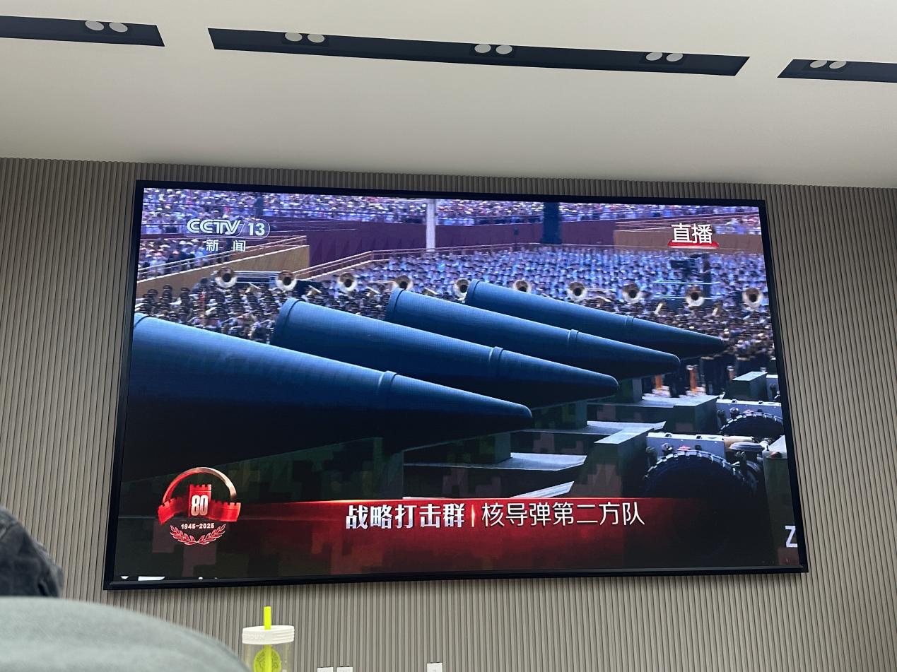 紧随其后的装备方队,组成滚滚铁流,气势如虹地通过天安门。从陆地猛虎的新型主战坦克,到决胜苍穹的先进战机;从威震四方的战略导弹,到信息主导的新型无人机……一件件彰显国家实力的“大国重器”依次亮相,引发现场党员阵阵赞叹。大家深刻感受到,祖国科技实力的飞跃式发展,正是国家繁荣昌盛、和平发展的重要基石。这份强大的安全感,让每一位在场者倍感骄傲与踏实。
