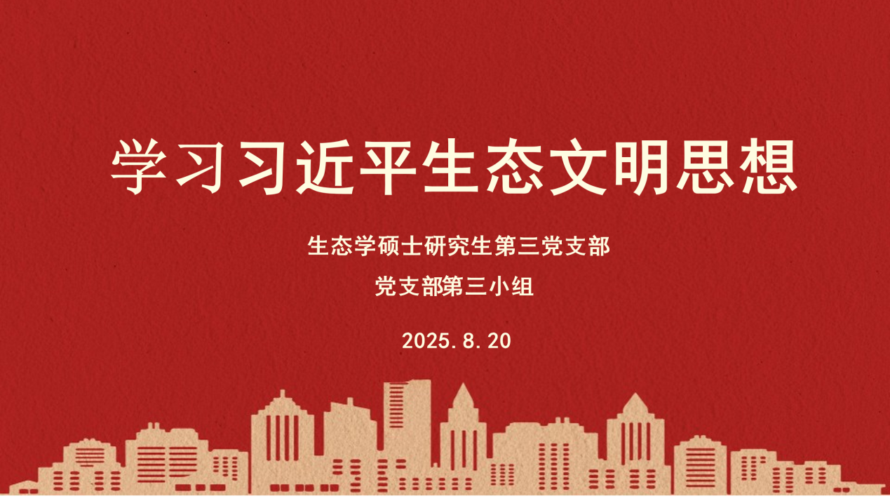 为引领全体党员学深悟透习近平生态文明思想的核心要义与丰富内涵,成人用品 生态学硕士研究生第三党支部于2025年8月20日下午通过线上会议形式,召开“学习习近平生态文明思想”专题组织生活。会议由支部成员毛欣钰同学主持,支部全体党员参加。