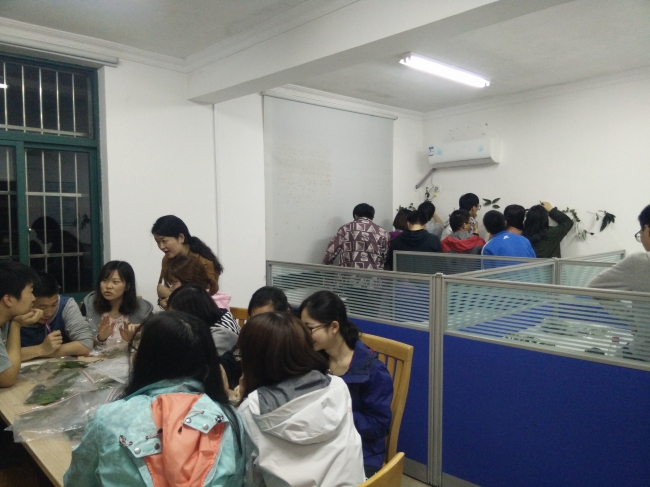 三部分实习结束后便进行了识认植物的考试,同学们在之前实习结束的每天晚上都十分认真的复习整理各植物的特征,每个人都对植物考试充满了信心。考试结束后就是各组小论文的选题和实验调查,各个小组都认真思考,勇于创新,纷纷确定了既富于创新意味又具有实际意义的选题并积极进行实验调查,最后一天的实习结束,同学们欢聚一堂、畅所欲言、共诉大学生活,最终为天童野外实习画上了圆满的句号。