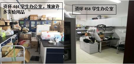 本次检查中几乎所有学生办公室和实验室都存在着大大小小的安全隐患,其中最差学生办公室为生科辅楼一楼113室(甄广印、徐娟、邓杰、蔡永立、韩骥、刘敏学生),最差实验室为生科辅楼112室(甄广印、徐娟、邓杰学生)。检查中发现最普遍的问题是堆放杂物,其他明显的问题有接线板乱拉乱放、做实验穿着不当、办公室使用微波炉等。希望老师和同学们认识到安全问题的严重性,多加重视与防范,发现问题及时改正!