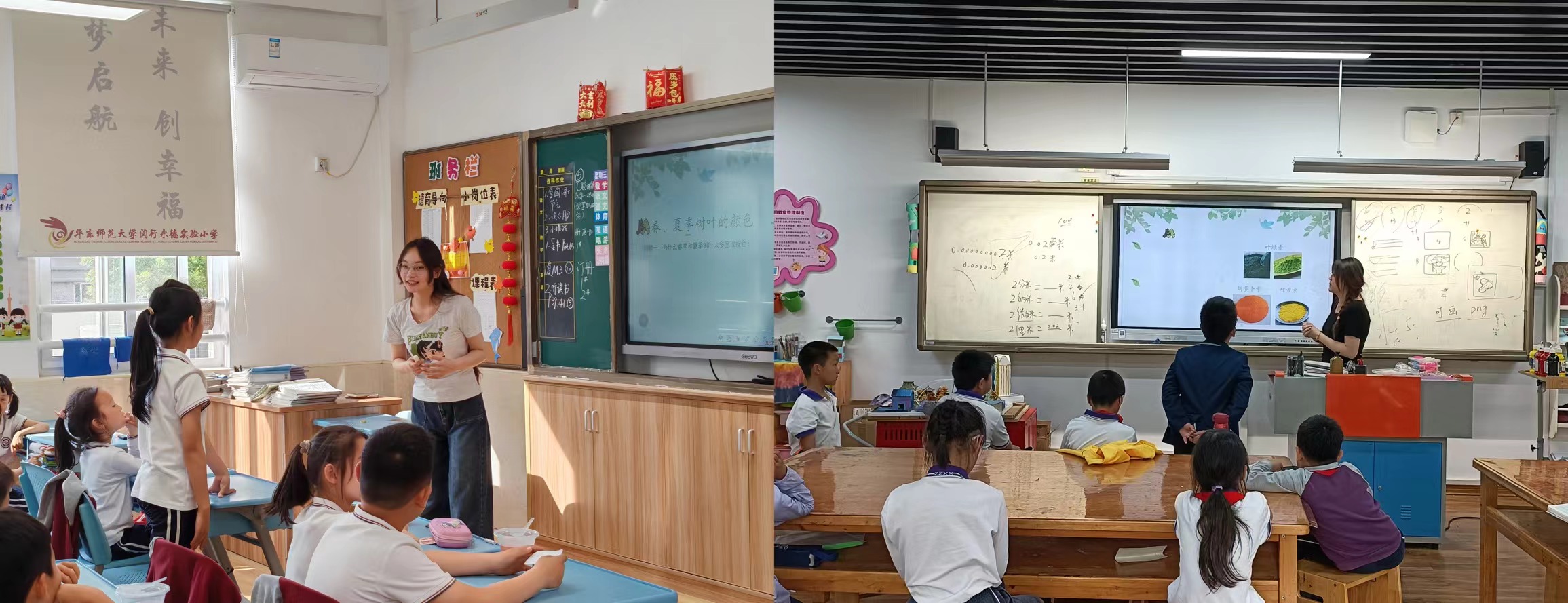 2024年5月21至23日,生态环境小课堂讲师团前往华东师范大学闵行紫竹小学、永德实验小学和马桥小学开展环教课。本次环教课的主题为“叶子的颜色”,担任本次课程的讲师为杨晓雨、李雅男、曾予涵和李涛同学。