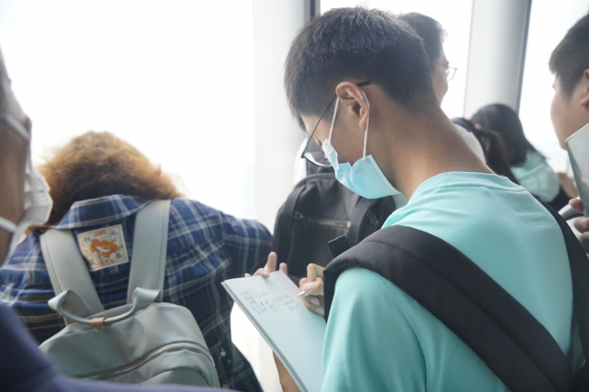 上午9点,到达上海中心大厦,同学们首先在票务中心门前集合,张勇老师向同学们简要介绍了上午的行程安排,并分享了关于上海中心的参观建议。
