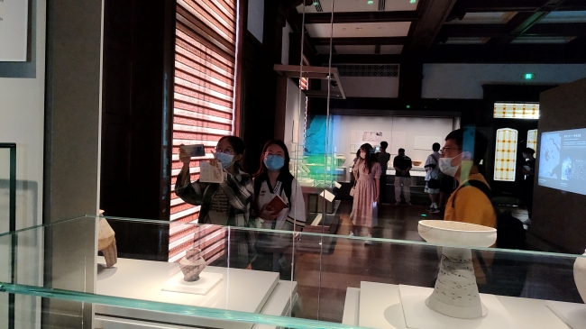 下午14:50同学们在上海市历史博物馆开启了下午的课程学习。进馆之前,老师邀请了4位上海本地同学向同学们简要讲述一行自己眼中的上海历史。听完他们的讲述,同学们开始陆续入馆参观。